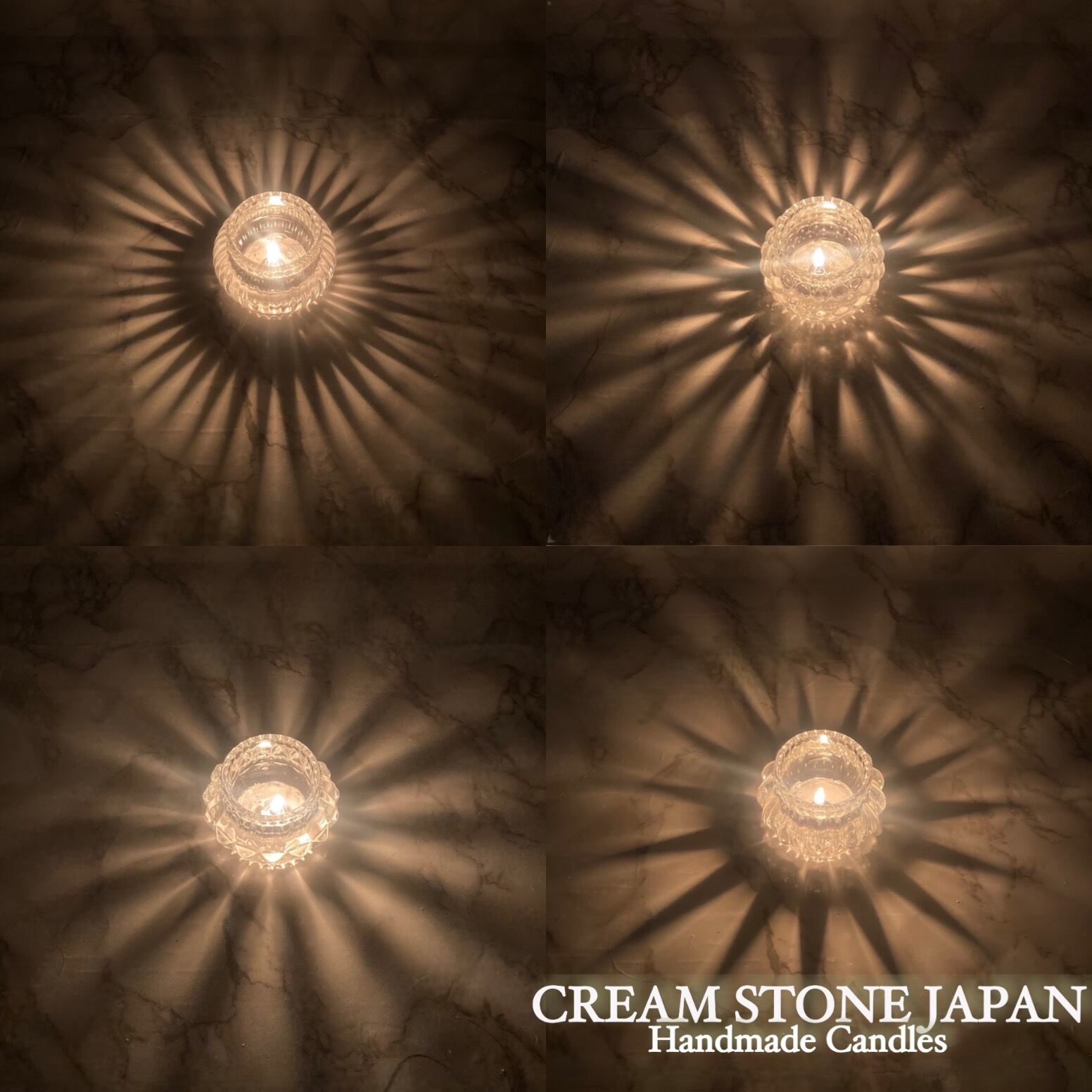 ティーライトキャンドル、クリアカップなので炎が綺麗に透けます。