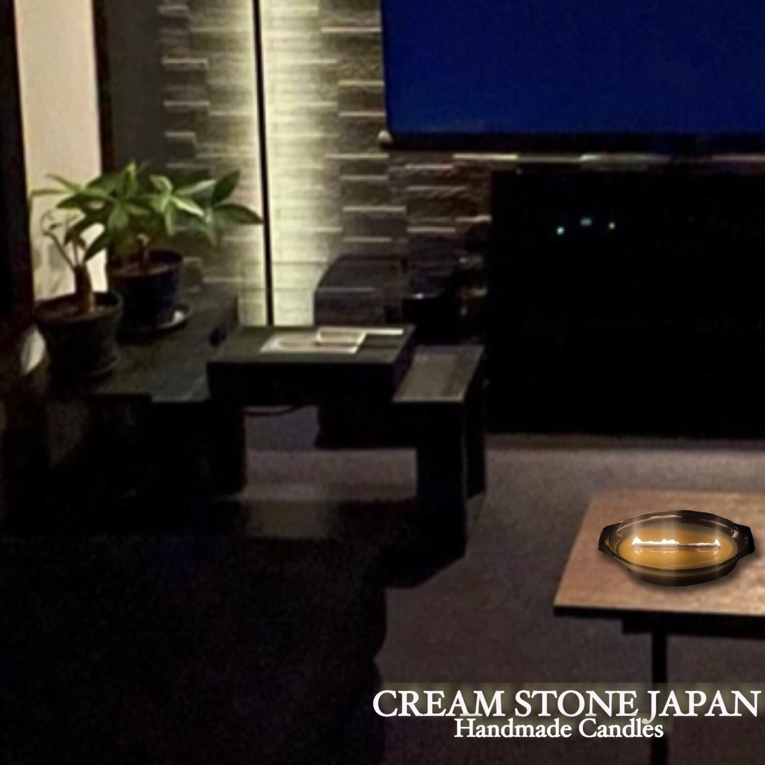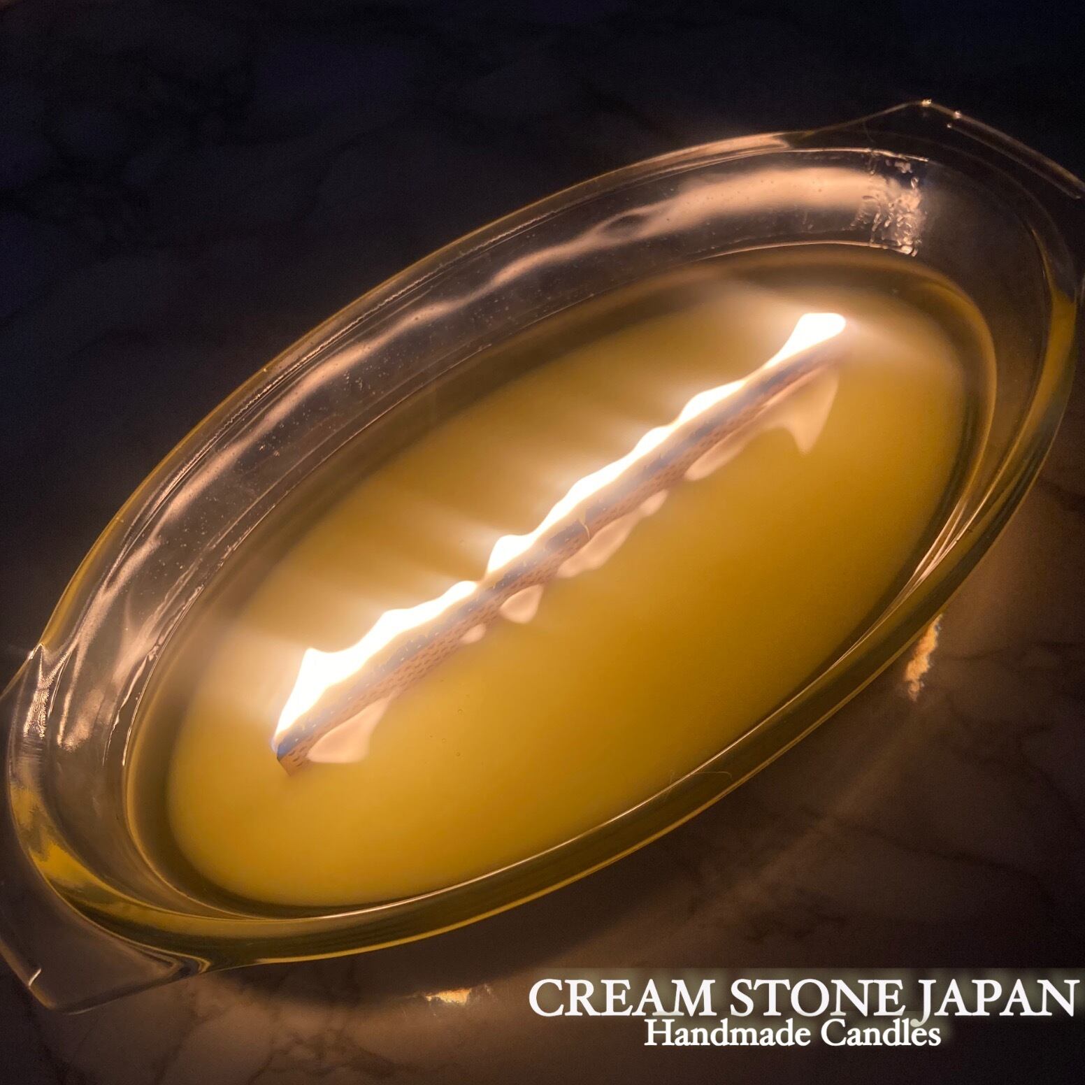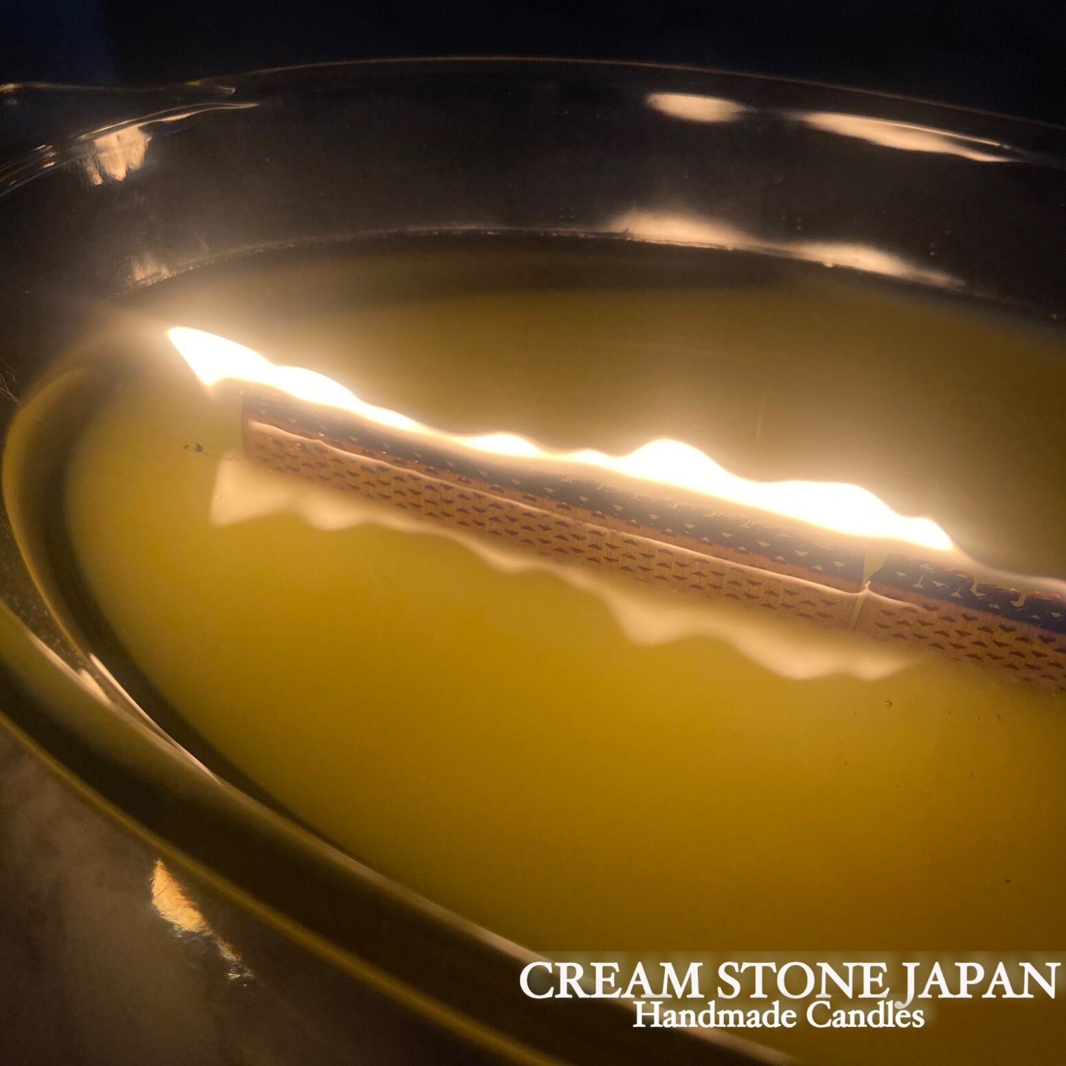 灯せば小さな暖炉の様に焚き火が横長に広がってゆく美しいキャンドルです。